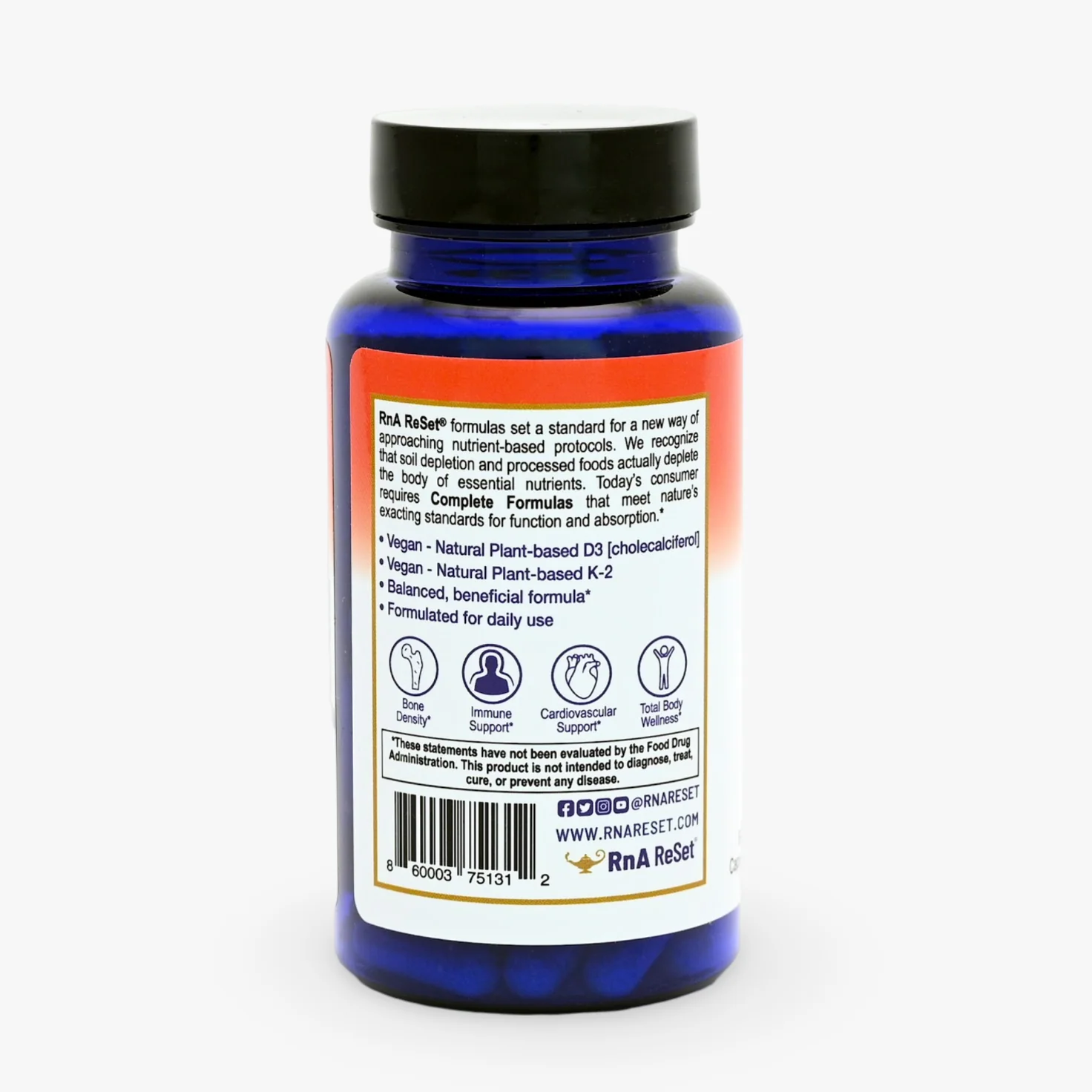 D3K2 ReSet® combines the benefits of vitamin D3 and vitamin K2 in a non-GMO vegetable cellulose capsule. This high-potency formula offers more than standard vitamin D supplements, enhancing the body's ability to regulate calcium and phosphorus levels while supporting bone health, heart health, muscular and cellular health, and improved immune function.